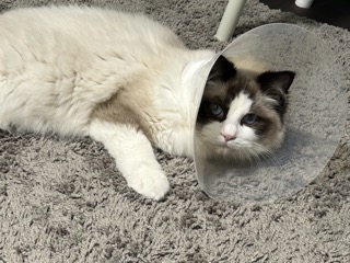 4月に去勢をしたのですが、術後はエリザベスカラーをつけなければいけないので、数日間大変そうでした笑
