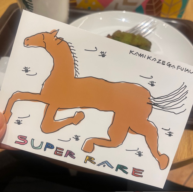 そして毎年恒例の初詣で末吉を引き、悔しかったのでちょっと流行りに乗ってローソンのおみくじカードをやったら”SURER RARE(神風吹くよ)”と書いてあってシークレット引きました・:*+.
